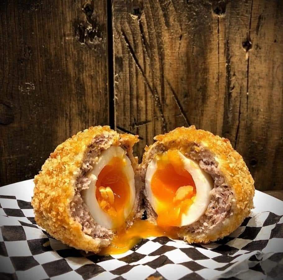 Snack on delicious handmade scotch eggs with meat, gluten-free and veggie options available